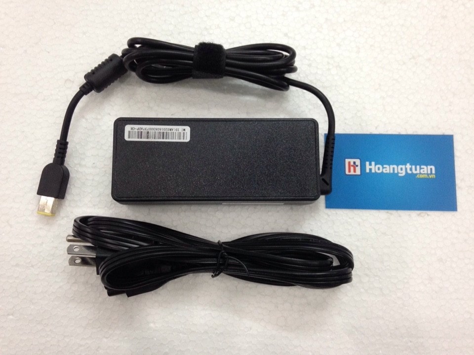 Adapter Lenovo 20V - 4.5A đầu USB có màu đen, trên bề mặt sạc có ghi đầy đủ các thông tin về thông số kỹ thuật và nguồn gốc xuất xứ. Một bộ Adapter Lenovo 20V - 4.5A đầu USB bao gồm một sạc và một dây nguồn AC.