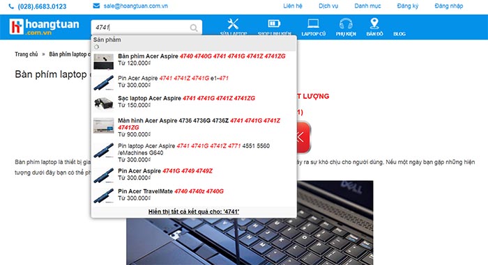 Chú ý: Để quá trình tìm kiếm nhanh chóng và tiết kiệm thời gian quý khách vui lòng gõ mã máy ví dụ Laptop của quý khách là " Acer Aspire 4741" thì chỉ cần gõ "4741" để tìm kiếm nhanh và chính xác nhất. Trong trường hợp không tìm được sản phẩm quý khách có thể liên hệ trực tiếp qua Hotline (028.6683.0123) hoặc chat trực tiếp với chúng tôi qua công cụ chat box góc phải website chúng tôi luôn có nhân viên hỗ trợ tận tâm. Cảm ơn quý khách đã tin tưởng và ủng hộ chúng tôi.