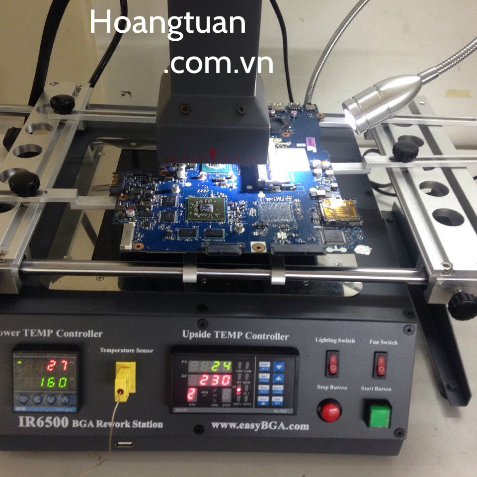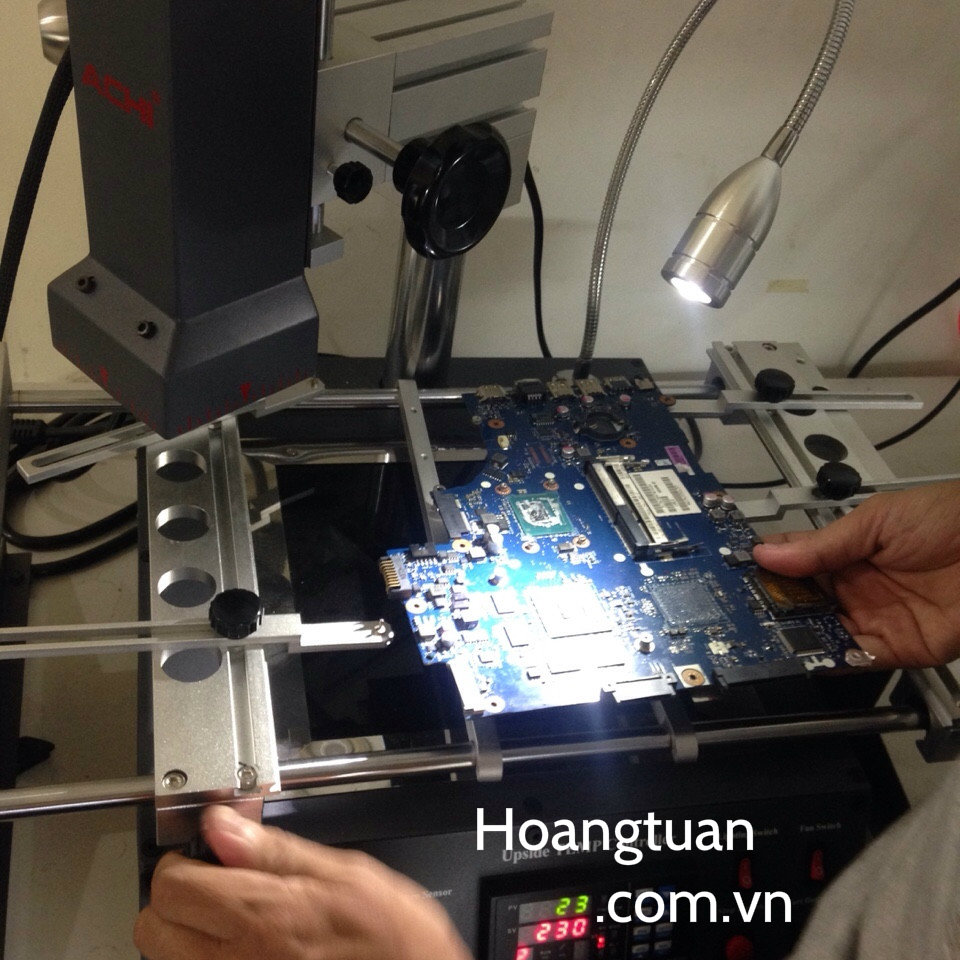 Công ty chúng tôi sử dụng máy đóng chip Vga bằng công nghệ ánh sáng hồng ngoại hiện đại nhất để hàn đóng chân chíp nên tỷ lệ thành công là 95% và hoàn toàn ít bị lỗi lại, không làm hư hỏng main như phương pháp hấp nhiệt hiện nay