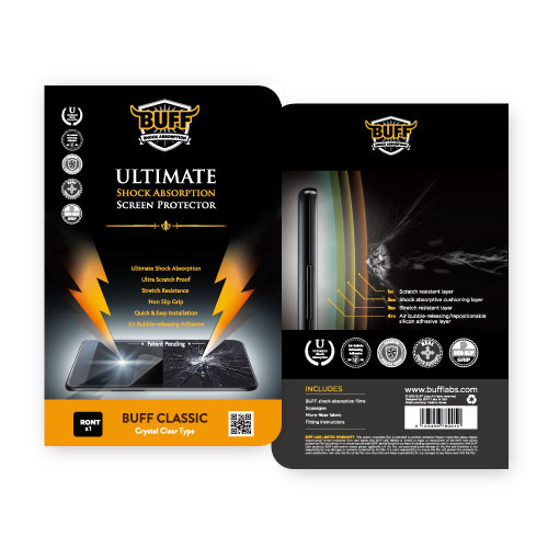 Miếng Film dán cường lực Buff bao gồm 4 lớp mỗi lớp có một chức năng khác nhau. khi có ngoại lực tác động tấm Film bốn lớp đóng vai trò như những "tấm đệm" để hút lấy lực tác động, sau đó phân tán ra khắp bề mặt điện thoại. Như vậy, lực sẽ không tập trung vào một điểm nhỏ nữa mà sẽ bị phân tán và mất tác dụng, chính vì thế màn hình điện thoại của chúng ta còn nguyên vẹn. Bốn lớp đệm nói trên được làm bằng silicon dính nên người dùng có thể gỡ ra để dán sang một chiếc thiết bị khác hay để dán lại cho đúng vị trí. Ngoài tác dụng hút lực, tấm bảo vệ của Buff còn có tính năng chống trầy, chống trơn trượt. Các bọt không khí cũng sẽ được tự động đẩy ra ngoài sau khoảng một đến hai ngày nhờ vào lớp dính trên sản phẩm. Với công nghệ này BuffLabs đã khắc phục được điểm yếu nhất trên các dòng điện thoại cao cấp hiện này là rất hay bị bể màn hình.