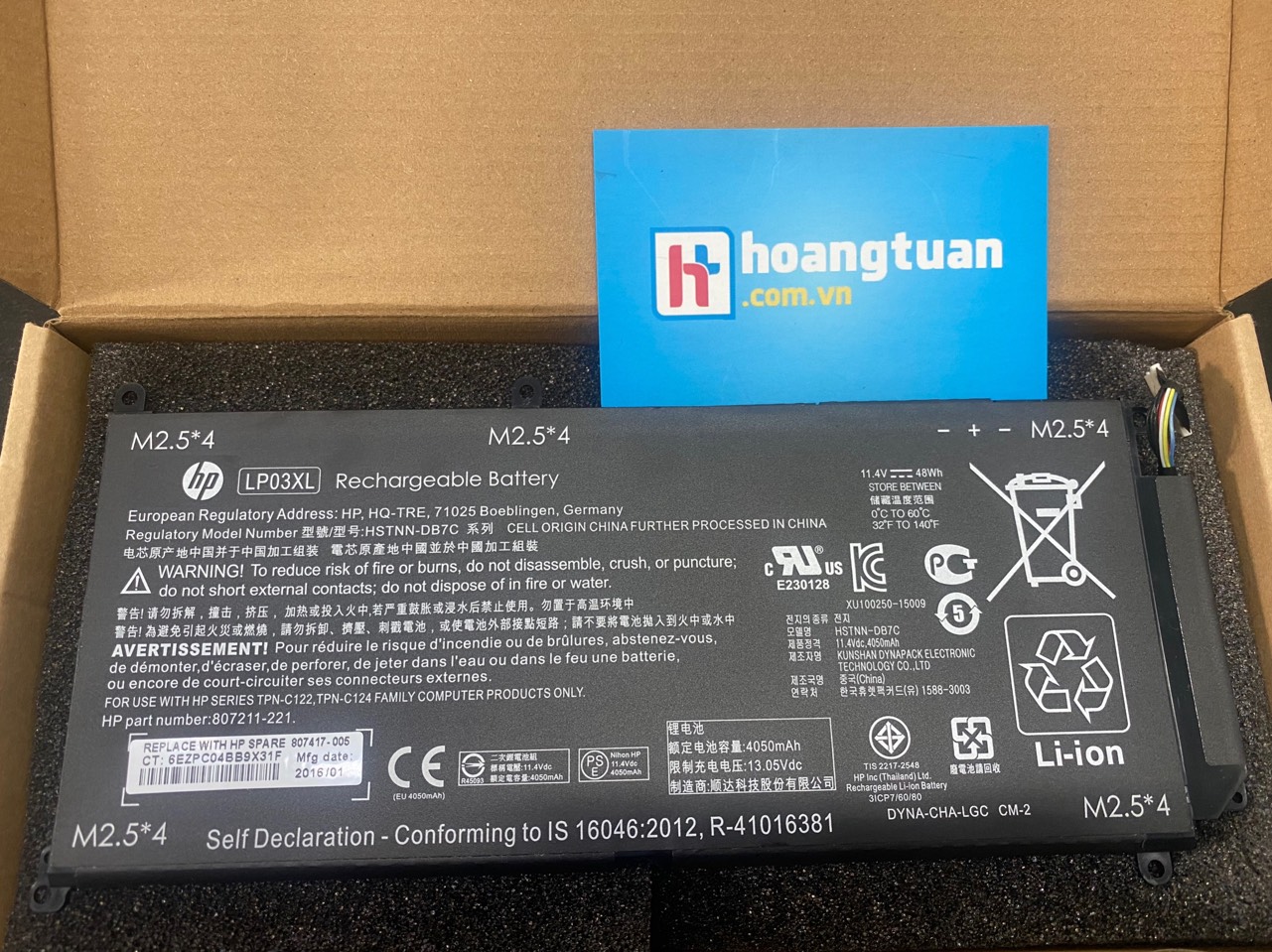 Pin HP Envy 7265NGW N1V47PA Envy M6-P113DX Envy 15-AE016TX N1V50PA Envy 15-AE017TX HSTNN-UB6R 807211-221 807211-121 TPN-C122 HSTNN-DB6X LP03048XL LP03XL